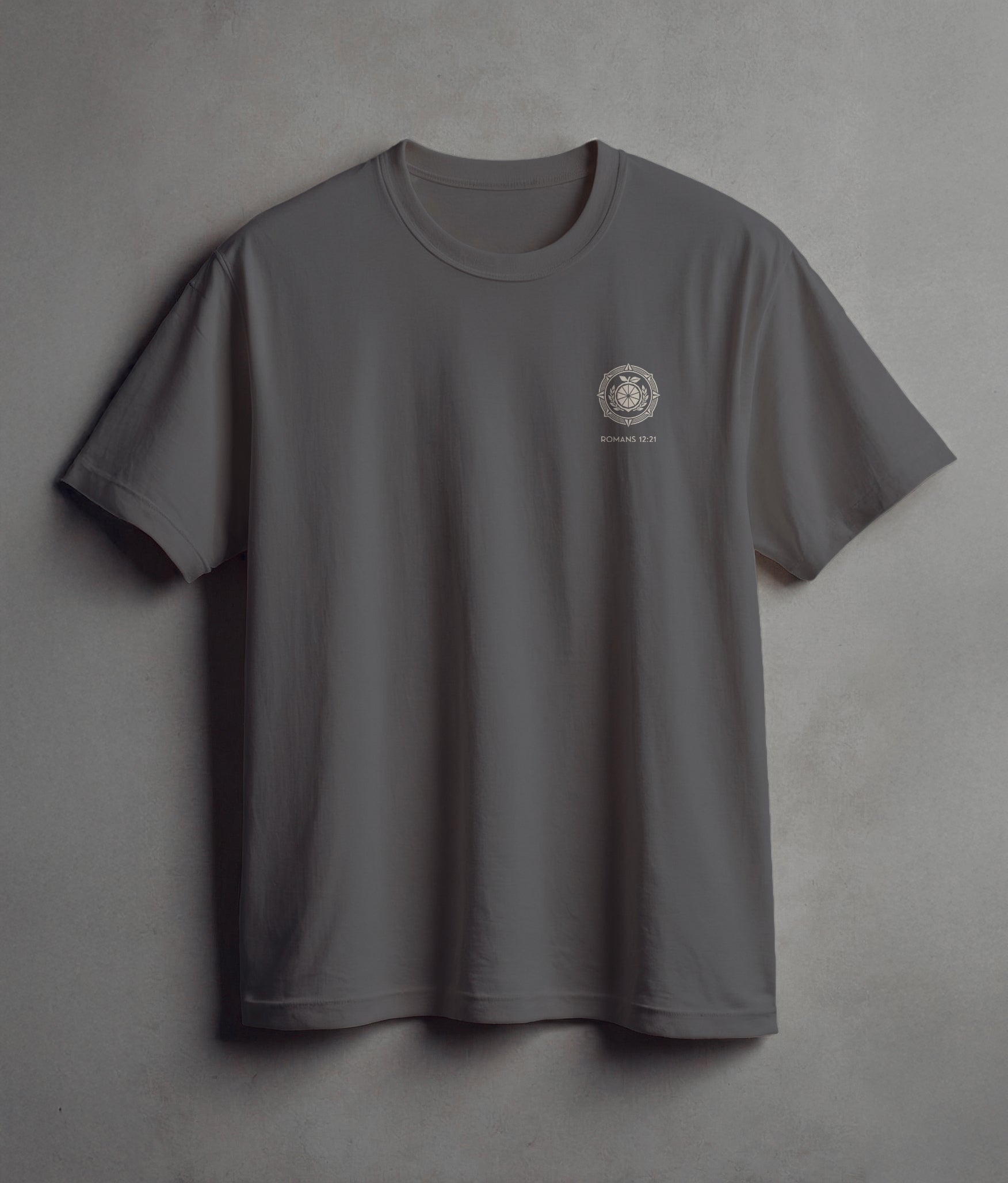 This crest draws from Romans 12:21 — a compass and fruit emblem reminding you: “Do not be overcome by evil, but overcome evil with good.” Goodness is the backbone that holds disciples upright in a collapsing world.