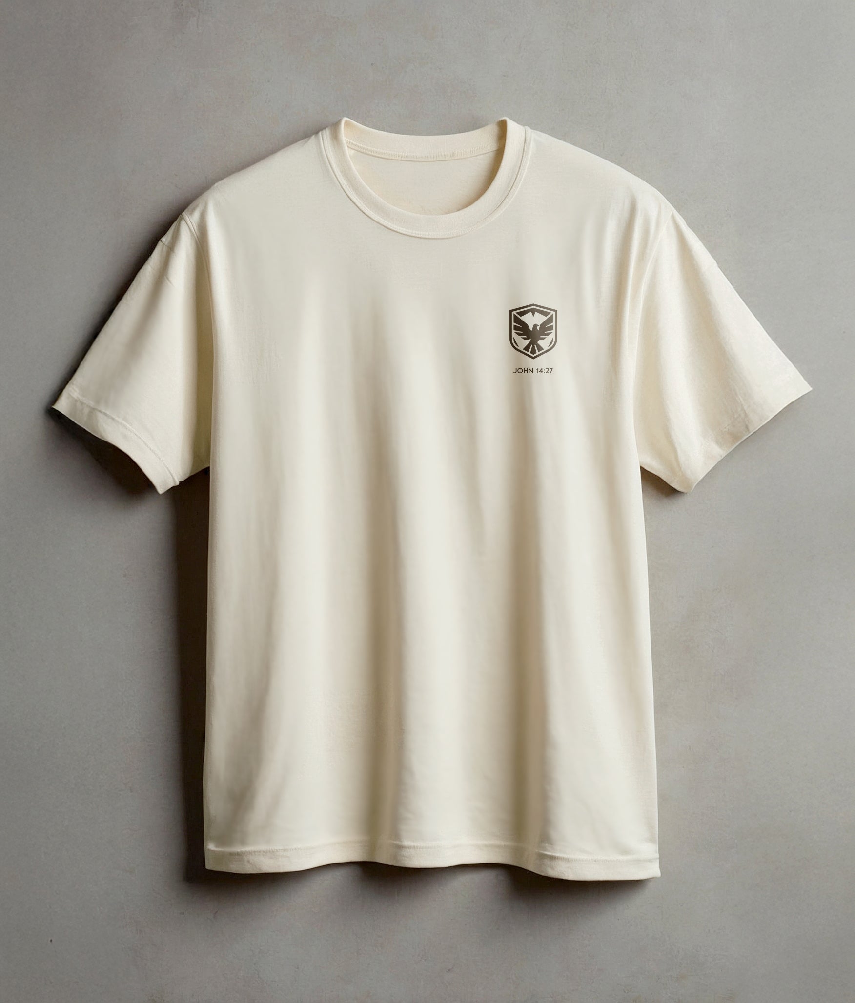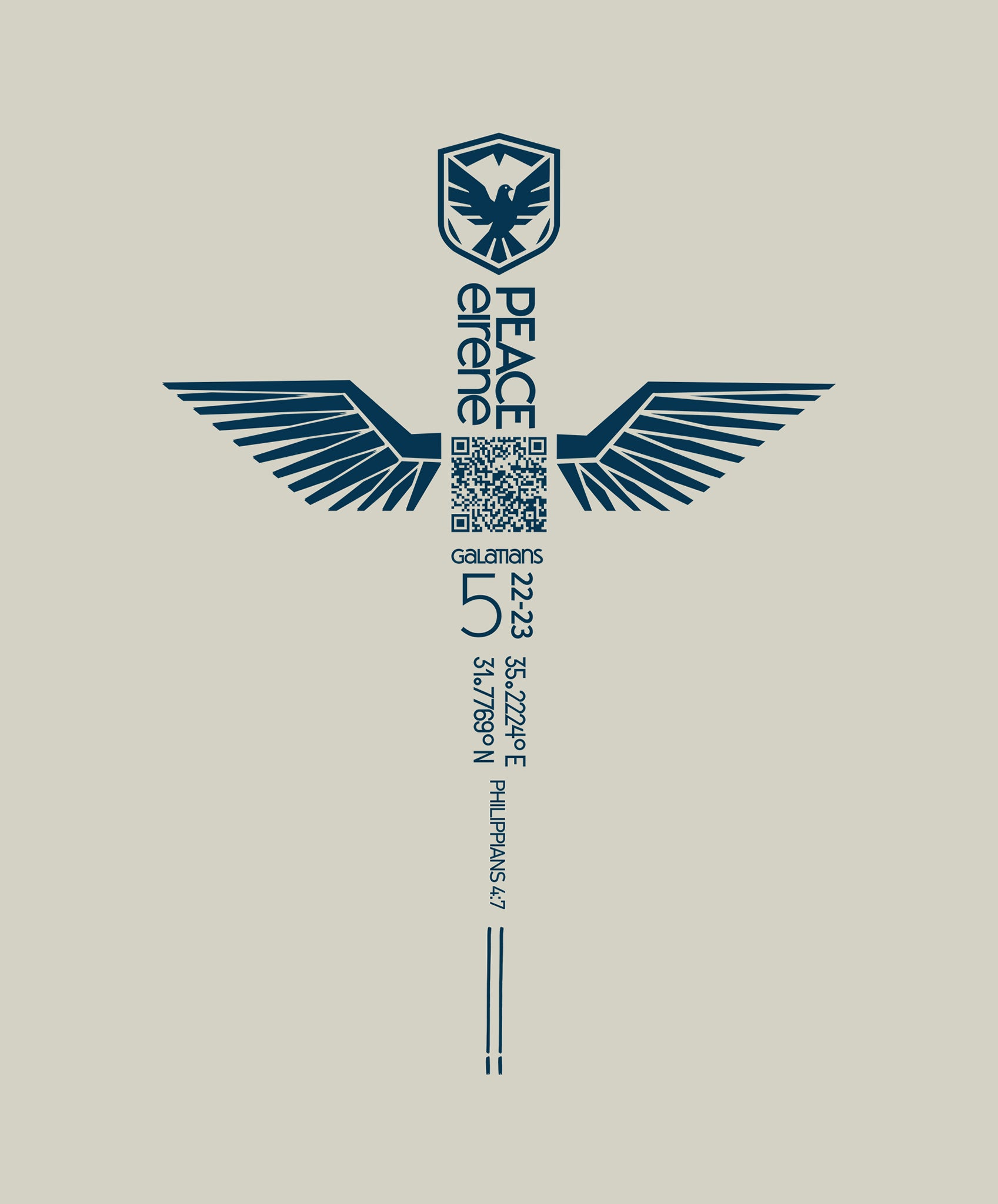 This design features the dove crest with militant wings, anchored in John 14:27: “My peace I give you. Do not let your hearts be troubled.” It’s a reminder that true peace is forged by the Spirit, not by circumstance.